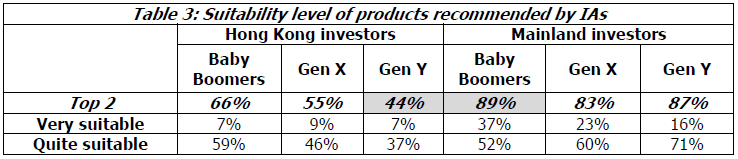 In contrast, only 59% of Hong Kong investors think the products are suitable, and the gap is more acute for Gen Y. (Table 3)